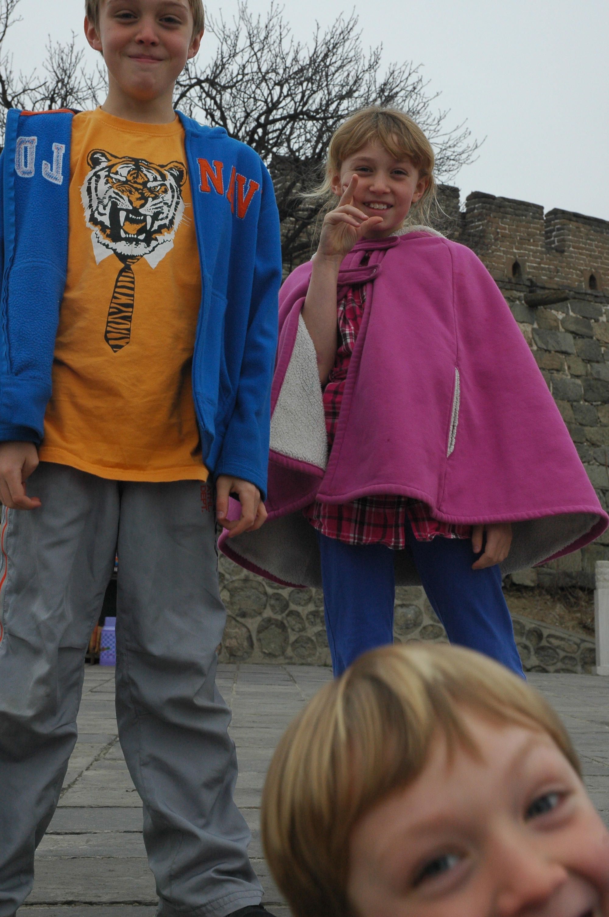 So we really talked up the slide. It was all the kids would get out of bed for once we were cocooned at the hotel. I had hired a driver and from the forecast had decided that Thursday was the best day for reasonable weather. We headed out for what should have been a 90 minute ride but instead participated in a 3 hour trek on back roads. We were trying to get to the Wall on Qingming—Tomb Sweeping Day—and every other Chinese person was trying to get somewhere as well. We arrived, and rode the cable car up to the top. We actually rode in the same cable car that brought President Clinton up on his visit. I thought that this was maybe a decal they had attached inside all the cable cars, but when we got out it turned out we were in THE actual car that had transported Bubba. Of course, my enthusiasm was matched by no one. You guys?! President Clinton! I might as well have been talking to myself.