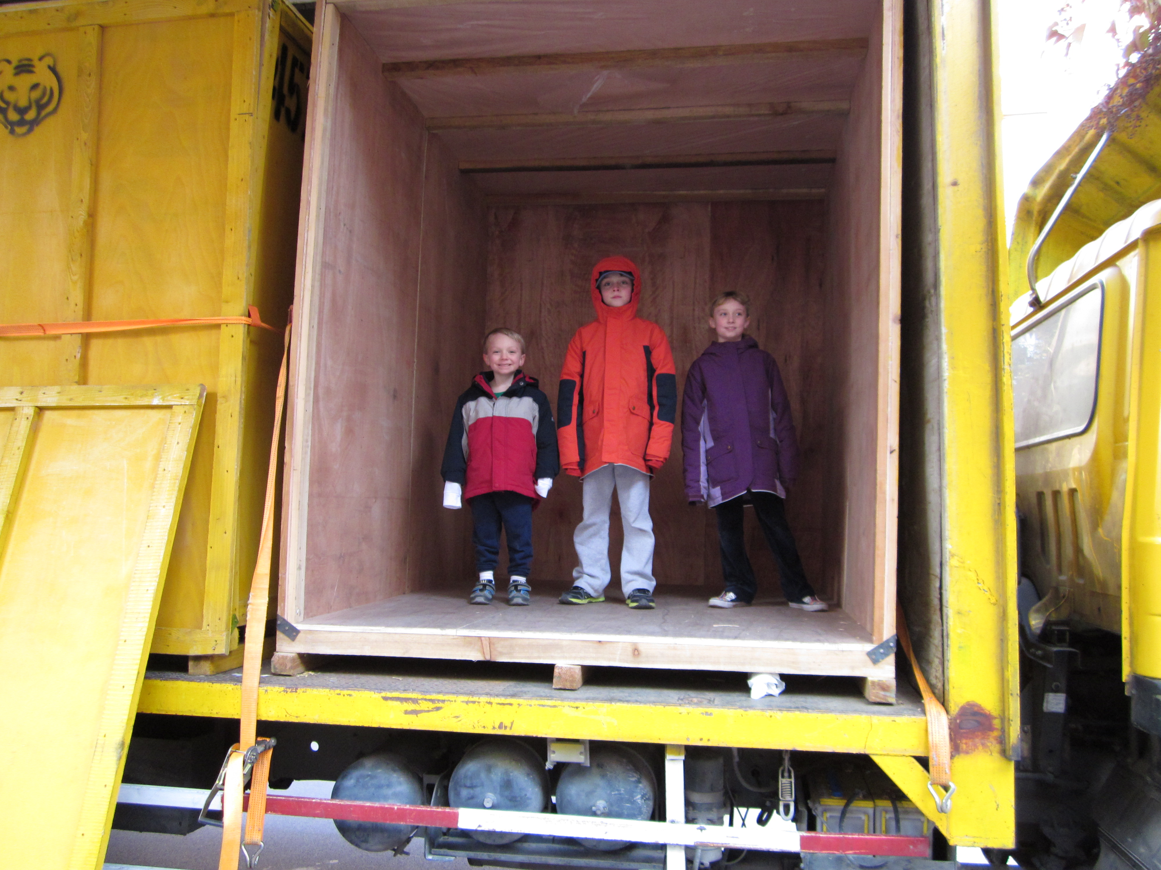 When the movers were unloading the truck the kids thought it would be fun to climb inside the shipping container. The Chinese moving men thought this was hilarious, but questioned what kind of a parent would let her children climb up in the truck. No one could move any boxes because we all needed to hover around the edge of the crate in case a kid fell out.