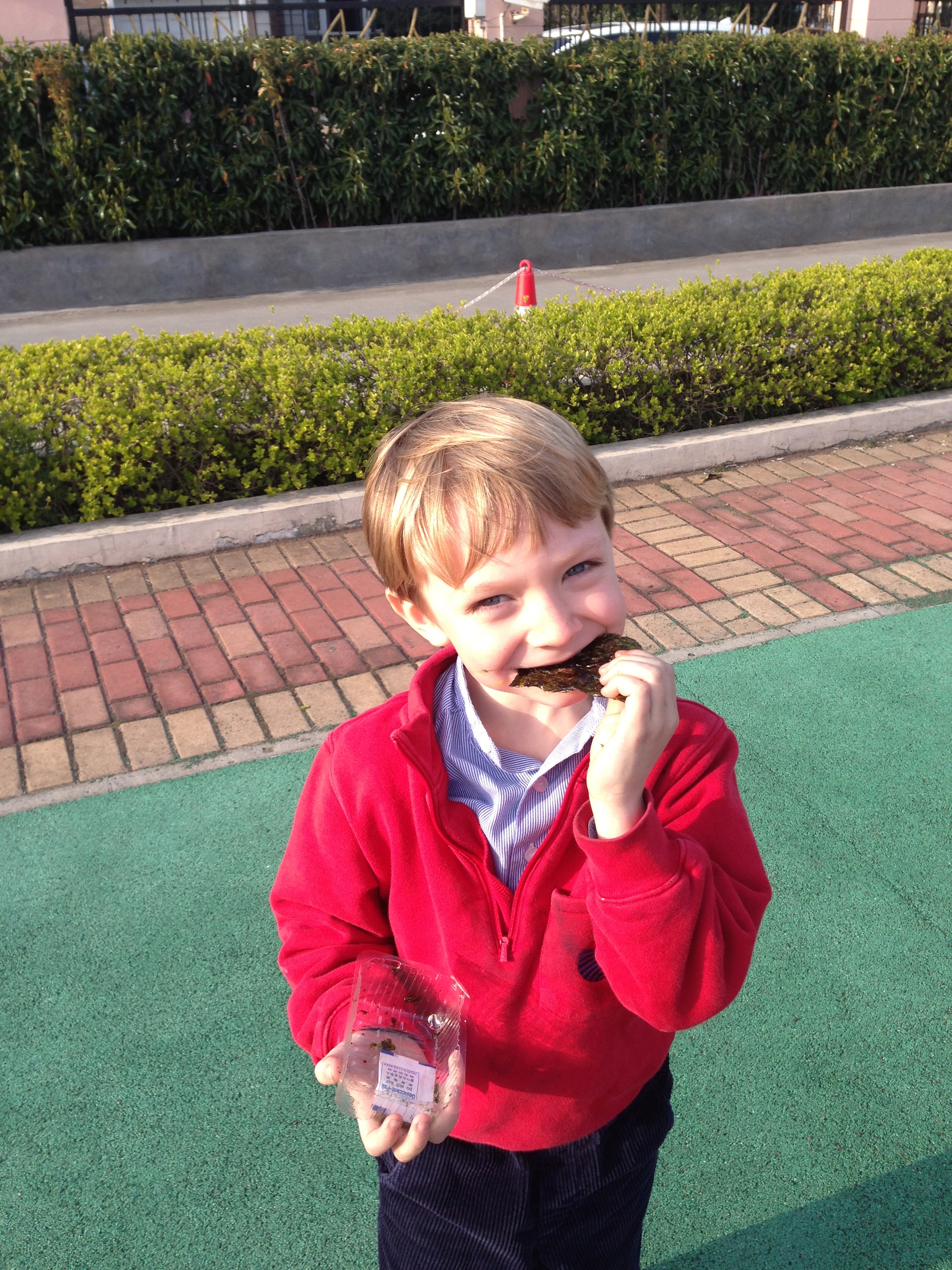 What!? It seems that Henry likes sheets of roasted seaweed! Who knew? “I eat this all the time,” he informed me before dismissing me with a wave of his grubby little fingers.